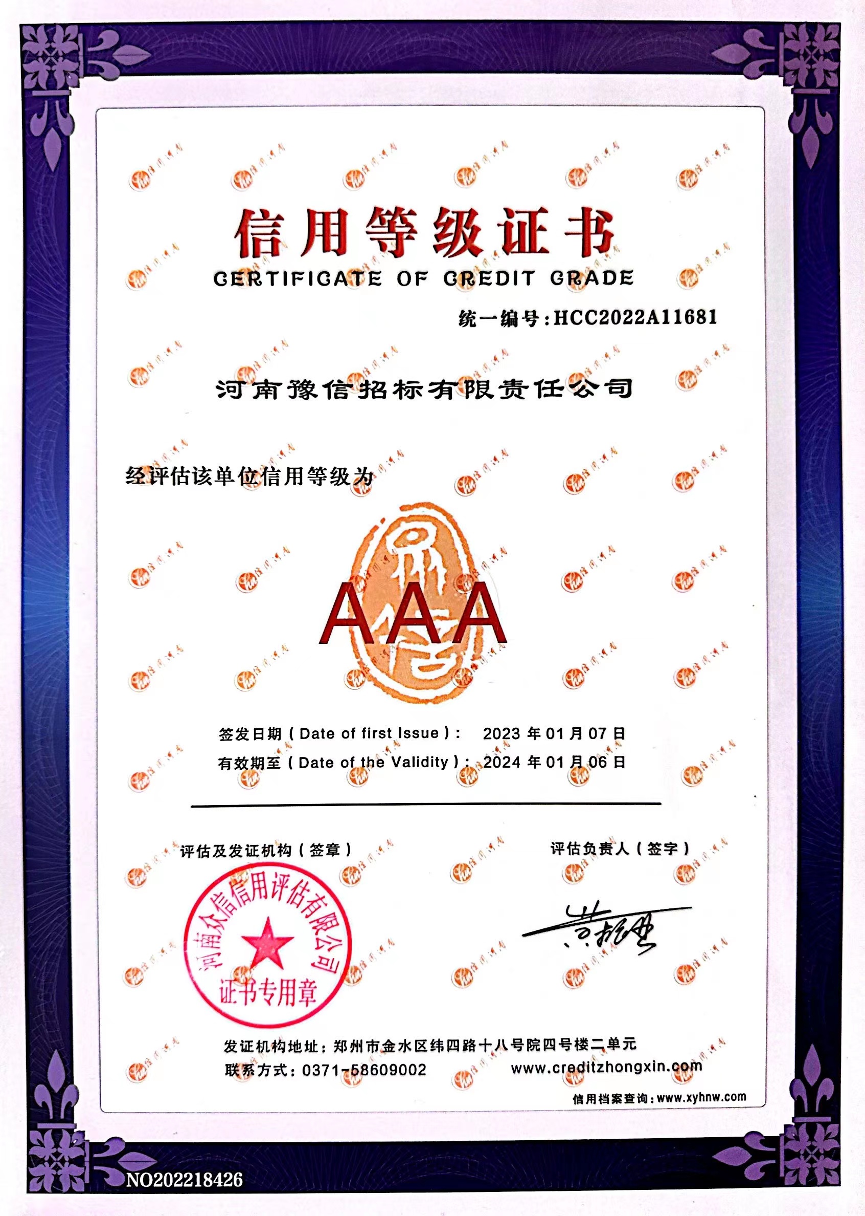 2023年信用等級(jí)AAA證書