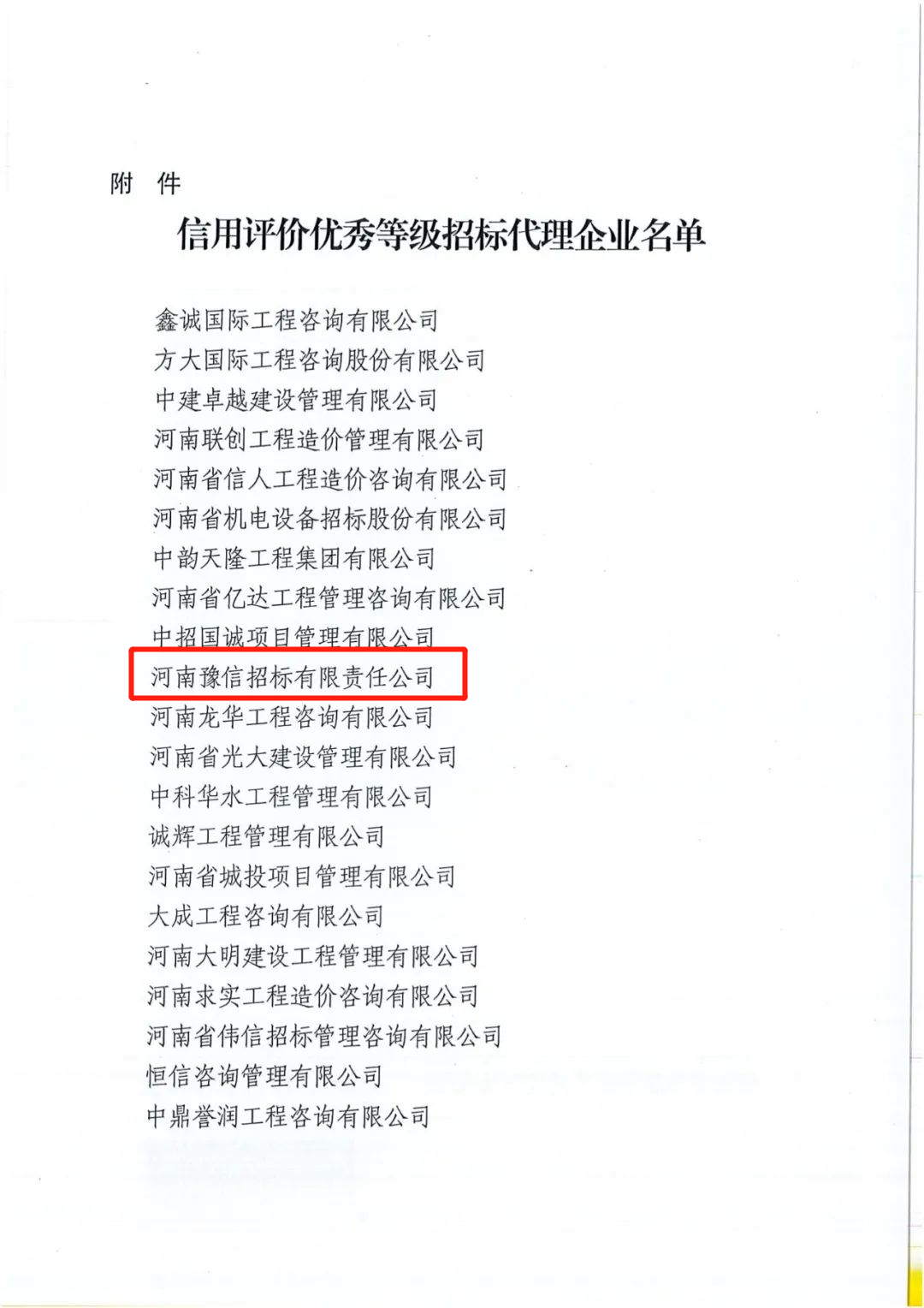 全省信用評(píng)價(jià)優(yōu)秀等級(jí)招標(biāo)代理