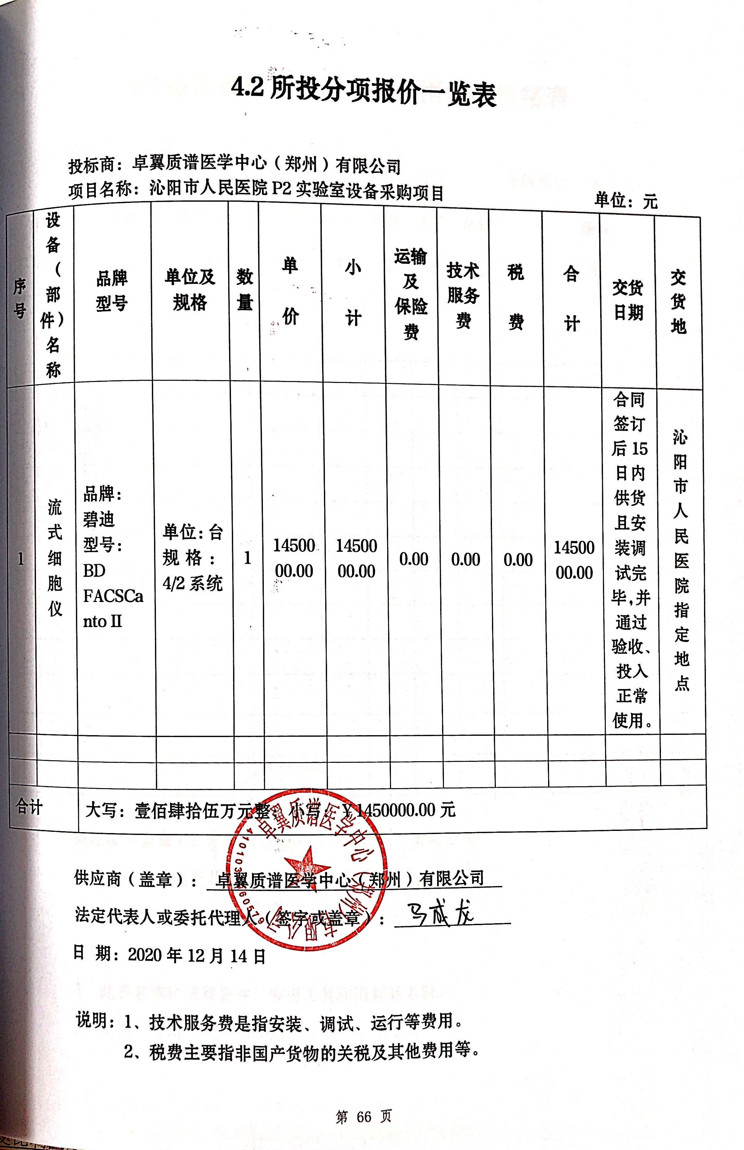 包1 | 流式細胞儀 | 卓翼質(zhì)譜醫(yī)學中心(鄭州)有限公司 | 河南省鄭州高新技術產(chǎn)業(yè)開發(fā)區(qū)金梭路33號1幢1單元8層835號 | 1450000.00 | 元 |