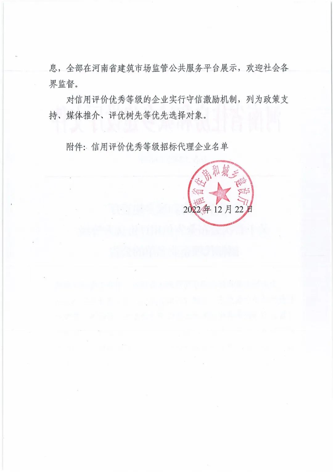 熱烈祝賀我公司獲得河南省住建廳評(píng)定“全省信用評(píng)價(jià)優(yōu)秀等級(jí)招標(biāo)代理“企業(yè)稱號(hào)。