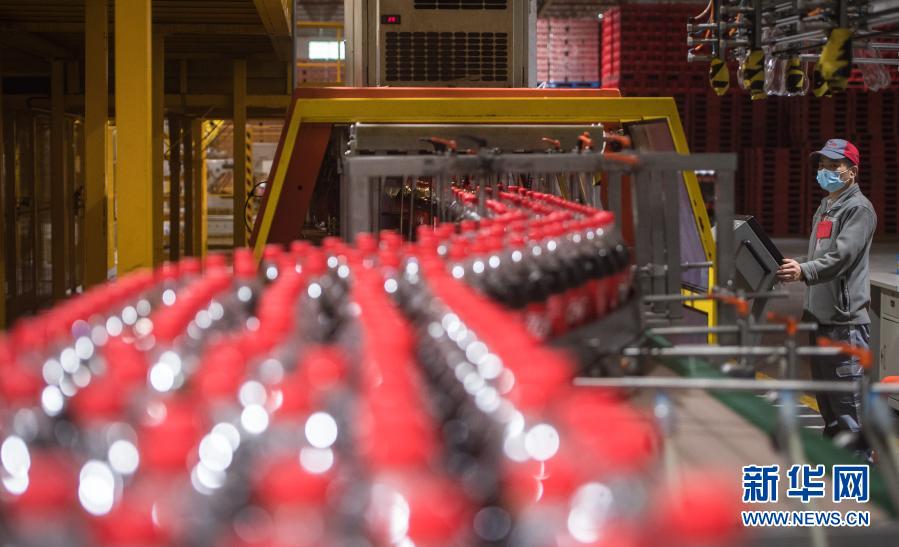 3月24日,工人在復工復產(chǎn)的湖北太古可口可樂飲料有限公司流水線上作業(yè)。新華社記者 肖藝九 攝