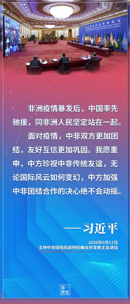 “堅(jiān)定不移攜手抗擊疫情”“堅(jiān)定不移推進(jìn)中非合作”“堅(jiān)定不移踐行多邊主義”“堅(jiān)定不移推進(jìn)中非友好”。一年前,習(xí)近平主席在中非團(tuán)結(jié)抗疫特別峰會(huì)上提出的重要主張,展現(xiàn)了中非“團(tuán)結(jié)抗疫、共克時(shí)艱”的堅(jiān)定決心,指明了疫情下中非抗疫及務(wù)實(shí)合作的前行路徑,擘畫了中非關(guān)系發(fā)展的未來(lái)方向,也為國(guó)際社會(huì)團(tuán)結(jié)協(xié)作早日戰(zhàn)勝疫情注入了強(qiáng)大正能量。