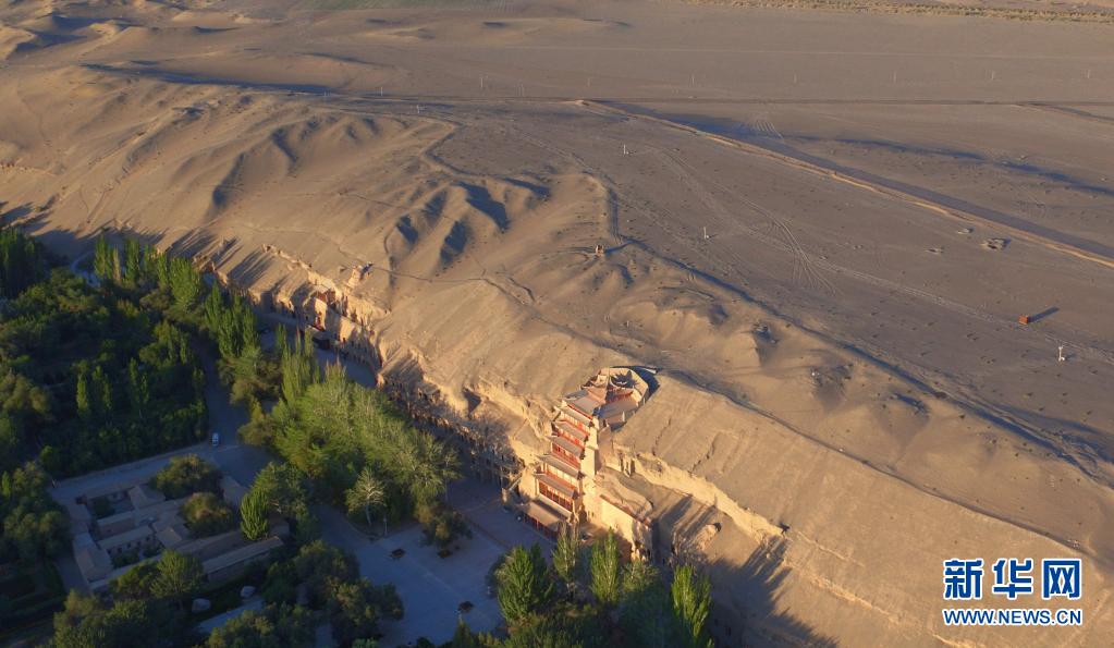 世界文化遺產(chǎn)莫高窟(2016年9月7日攝,無(wú)人機(jī)照片)。新華社記者 陳斌 攝