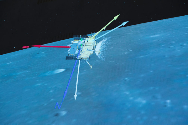 12月1日,在北京航天飛行控制中心拍攝的嫦娥五號探測器落月過程。新華社記者 金立旺 攝