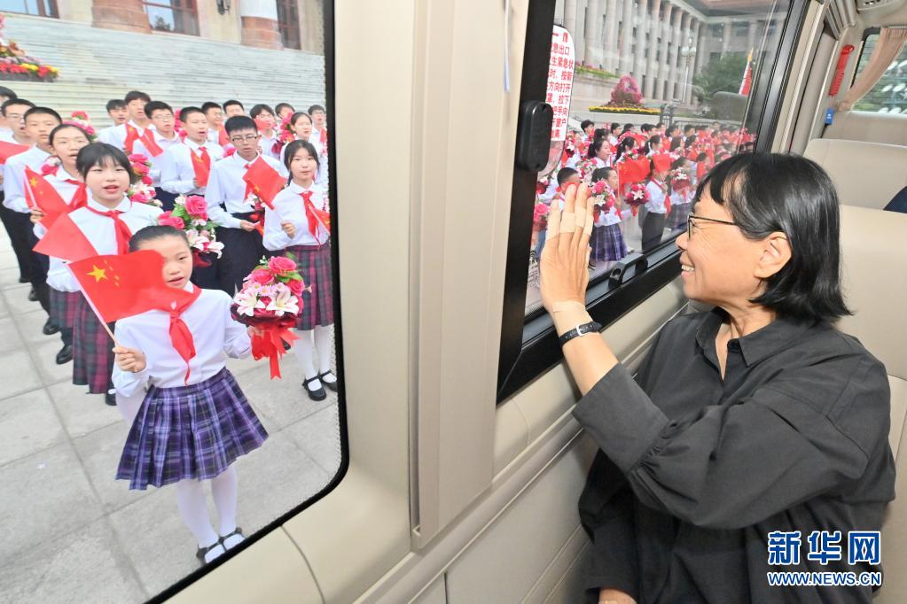 6月29日,慶祝中國共產(chǎn)黨成立100周年“七一勛章”頒授儀式在北京人民大會(huì)堂金色大廳隆重舉行。這是“七一勛章”獲得者張桂梅向青少年致意。新華社記者 岳月偉 攝