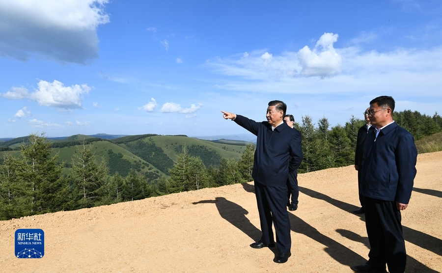 8月23日至24日,中共中央總書記、國家主席、中央軍委主席習(xí)近平在河北省承德市考察。這是23日下午,習(xí)近平在塞罕壩機械林場月亮山考察。新華社記者 謝環(huán)馳 攝