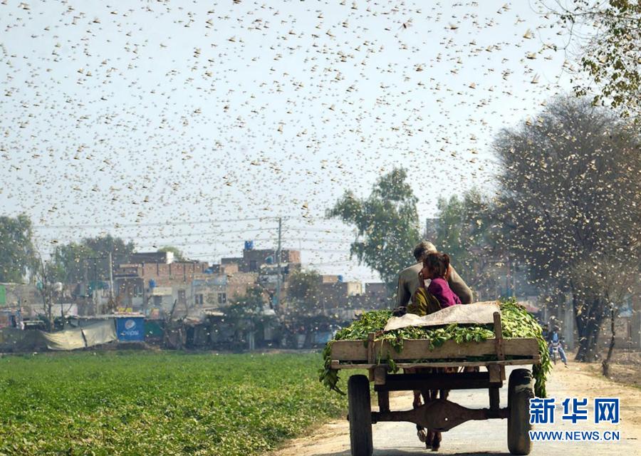 2月15日,在巴基斯坦東部旁遮普省的奧卡拉地區(qū),漫天的蝗蟲肆虐(手機照片)。新華社發(fā)