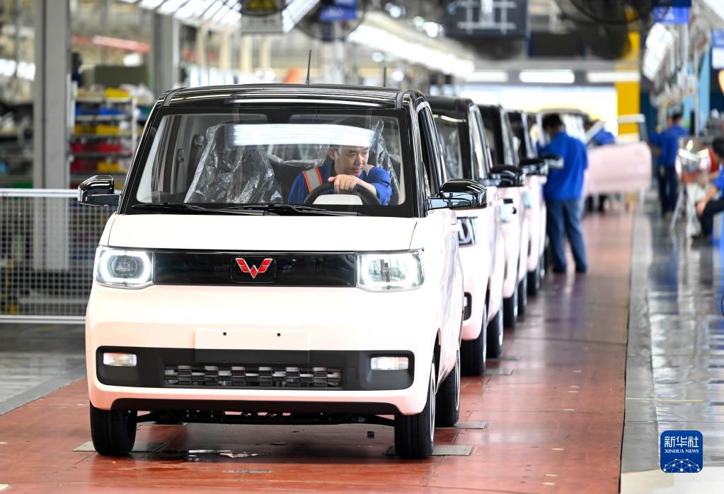 在廣西柳州一家汽車(chē)企業(yè),工人在新能源汽車(chē)生產(chǎn)線(xiàn)上忙碌(8月12日攝)。新華社發(fā)(黎寒池 攝)