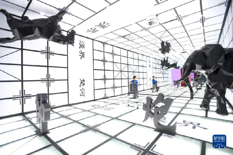 2019年9月21日,小朋友在湖南省長(zhǎng)沙市“字在其中”漢字國(guó)潮藝術(shù)展上參觀。新華社記者 陳澤國(guó) 攝