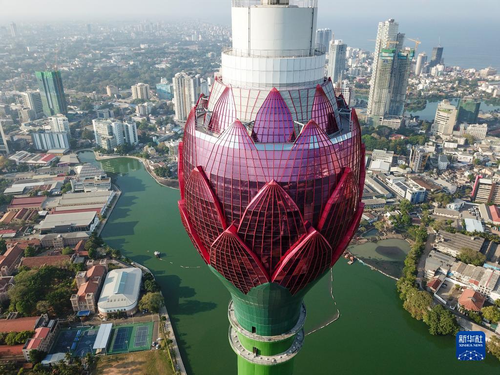 這是無(wú)人機(jī)航拍的斯里蘭卡科倫坡蓮花電視塔(2019年4月10日攝)??苽惼律徎娨曀侵兴箖蓢?guó)在“一帶一路”建設(shè)中的重要合作項(xiàng)目。新華社記者 郭磊 攝