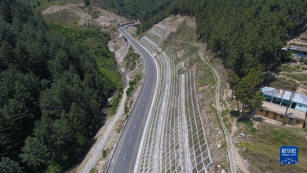 這是2020年7月28日拍攝的巴基斯坦喀喇昆侖公路二期項(xiàng)目曼塞赫拉至塔科特二級(jí)公路段??龉范陧?xiàng)目將中巴友誼公路向南延伸,融入巴南北交通干線。新華社發(fā)(中國(guó)交通建設(shè)股份有限公司供圖)