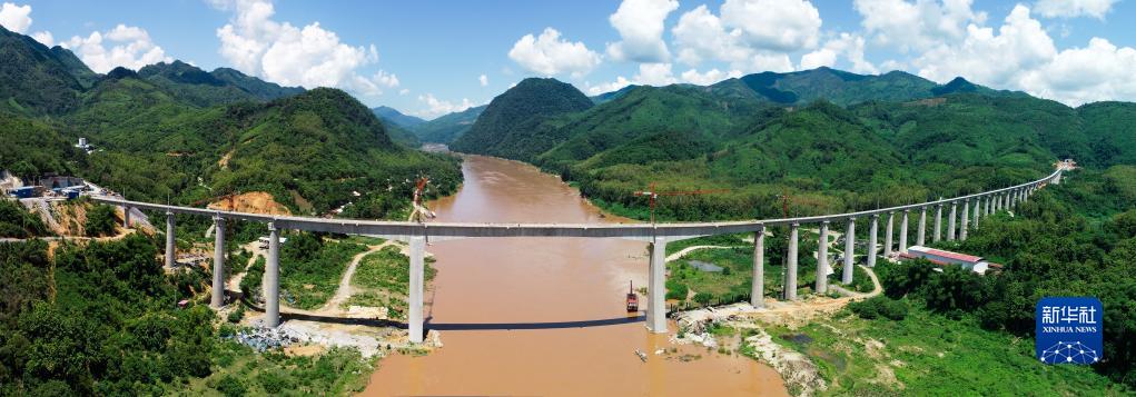 這是2020年7月24日在老撾拍攝的中老鐵路班納漢湄公河特大橋(無(wú)人機(jī)照片)。新華社發(fā)(潘龍柱 攝)