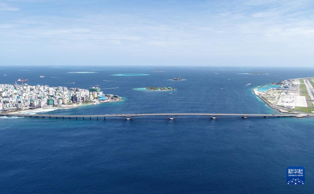 這是2019年8月30日拍攝的由中國(guó)援建的馬爾代夫中馬友誼大橋(無(wú)人機(jī)照片)。新華社發(fā)(王明亮攝)