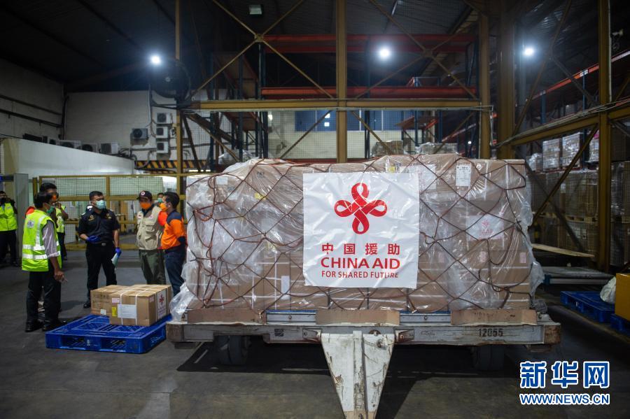 3 月 26 日,中國(guó)援助印度尼西亞的首批抗疫物資停放在雅加達(dá)蘇加諾哈達(dá)機(jī)場(chǎng)倉(cāng)庫(kù)。新華社記者 杜宇 攝