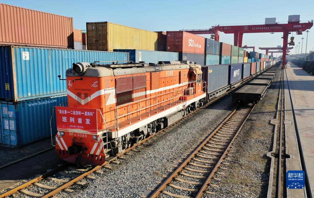 今年11月23日,江蘇連云港。一列裝載著生活用品、家用電器等貨物的中歐班列由此首發(fā)、飛馳而去,將于20天后抵達(dá)莫斯科沃爾西諾站。