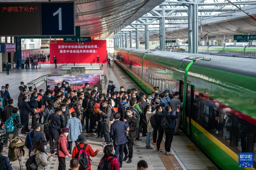 12月3日,乘客在中國(guó)昆明站準(zhǔn)備搭乘中老鐵路首發(fā)列車。新華社記者 胡超 攝