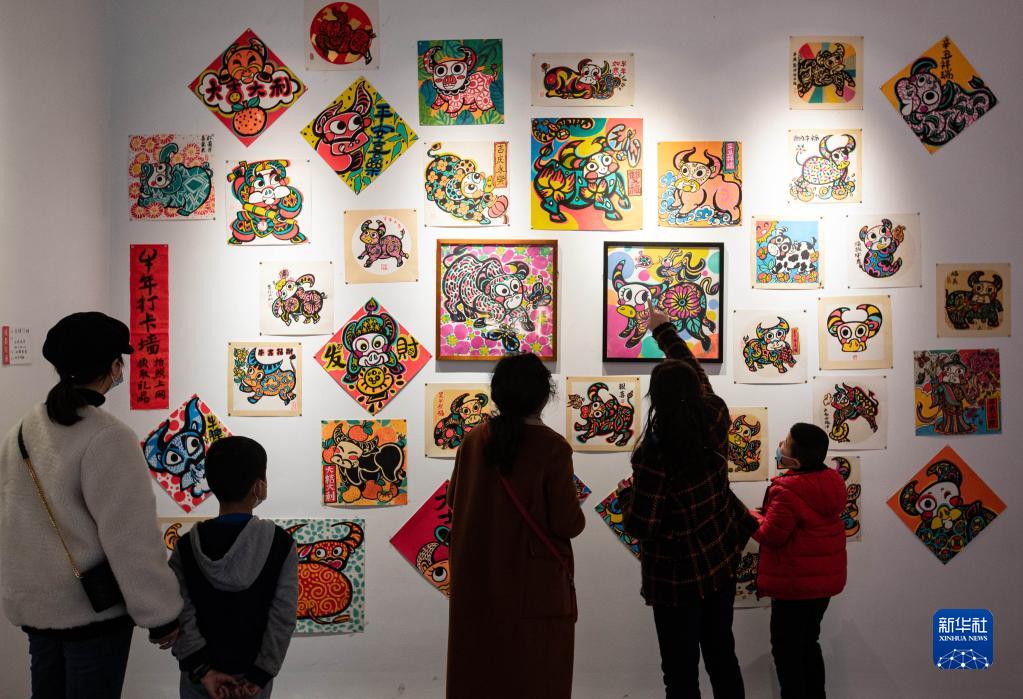 2月12日,在成都市人民公園,觀眾在觀看成都年畫展。新華社記者 江宏景 攝