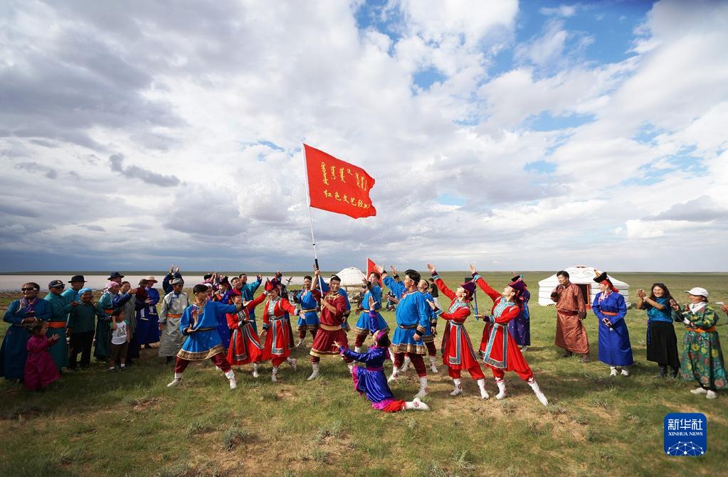 蔚藍的天空下,紫紅色的蒙古舞袍隨風漫卷,馬頭琴琴聲悠揚飄蕩,內(nèi)蒙古的廣袤草原上,一支支烏蘭牧騎為群眾唱響動人牧歌。60多年來,烏蘭牧騎隊員們始終扎根生活沃土、服務(wù)牧民群眾。