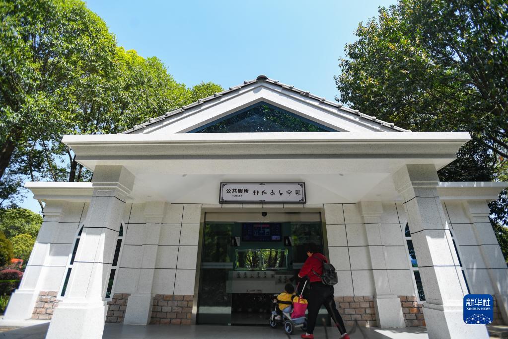 市民帶著小朋友進(jìn)入位于湖南長(zhǎng)沙縣星沙中心廣場(chǎng)的智慧廁所(2021年3月24日攝)。新華社記者 陳澤國(guó) 攝