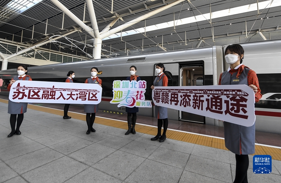 沐浴著虎年的陽(yáng)光,開(kāi)通不久的贛深高鐵上,一列列火車飛馳而過(guò)。