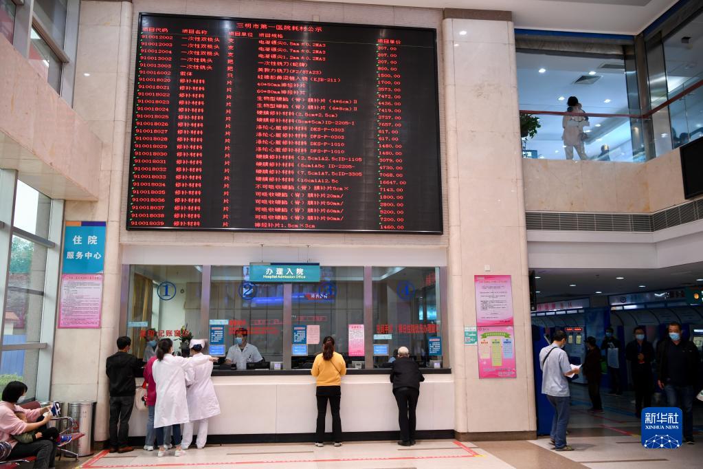福建省三明市第一醫(yī)院輪播公示藥品耗材價格(2020年11月24日攝)。新華社記者 姜克紅 攝