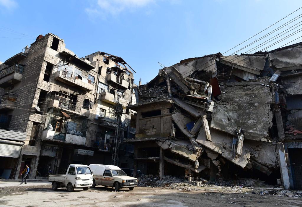 這是今年3月7日在敘利亞阿勒頗卡塔爾基工業(yè)區(qū)拍攝的被戰(zhàn)火損毀的房屋。(新華社發(fā),阿馬爾·薩法爾賈拉尼攝)