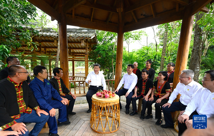 4月10日至13日,中共中央總書記、國家主席、中央軍委主席習近平在海南考察。這是11日下午,習近平在五指山市水滿鄉(xiāng)毛納村同村民們親切交流。新華社記者 李學仁 攝