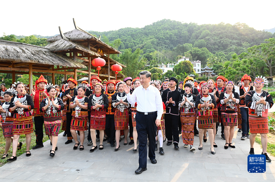 4月10日至13日,中共中央總書記、國家主席、中央軍委主席習近平在海南考察。這是11日下午,習近平在五指山市水滿鄉(xiāng)毛納村同村民們親切交流。新華社記者 謝環(huán)馳 攝
