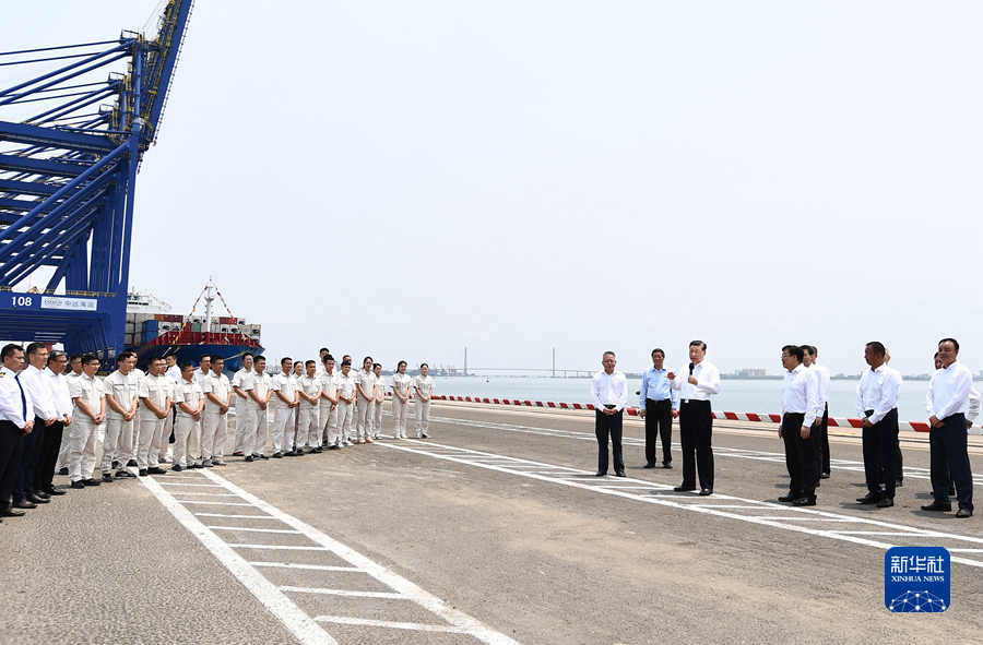 隨后,習近平來到洋浦國際集裝箱碼頭小鏟灘港區(qū),了解港口建設發(fā)展情況,同現(xiàn)場作業(yè)人員、掛職干部代表等親切交流。習近平強調,振興港口、發(fā)展運輸業(yè),要把握好定位,增強適配性,堅持綠色發(fā)展、生態(tài)優(yōu)先,推動港口發(fā)展同洋浦經(jīng)濟開發(fā)區(qū)、自由貿易港建設相得益彰、互促共進,更好服務建設西部陸海新通道、共建“一帶一路”。他指出,黨中央選派干部來自由貿易港掛職,既體現(xiàn)了黨中央對自由貿易港建設的關心和支持,也是對干部的培養(yǎng)鍛煉,要發(fā)揮掛職干部的積極作用,讓他們在基層一線增長才干。