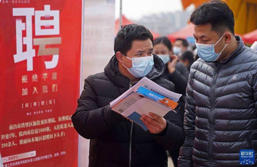 2月25日,江西省南昌市灣里管理局開展“春風(fēng)行動(dòng)”線下招聘活動(dòng)。這是求職者在招聘會(huì)現(xiàn)場(chǎng)交流。新華社記者 萬(wàn)象 攝