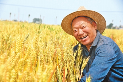 5月22日,杞縣五里河鎮(zhèn)東陶村農(nóng)民望著即將成熟的小麥,臉上滿是欣喜。劉銀忠 攝