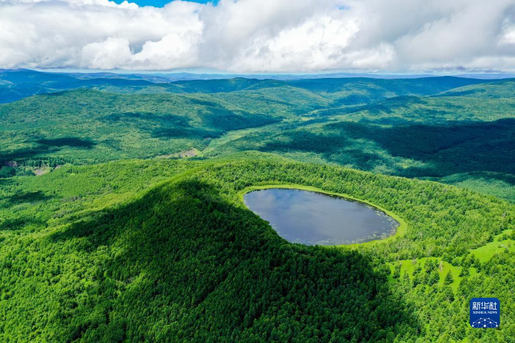 這是內蒙古阿爾山天池風光(2021年7月14日攝,無人機照片)。新華社記者 連振 攝
