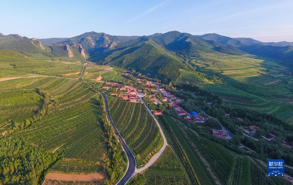 這是內蒙古赤峰市喀喇沁旗馬鞍山村景色(2019年7月15日攝,無人機照片)。新華社記者 劉磊 攝