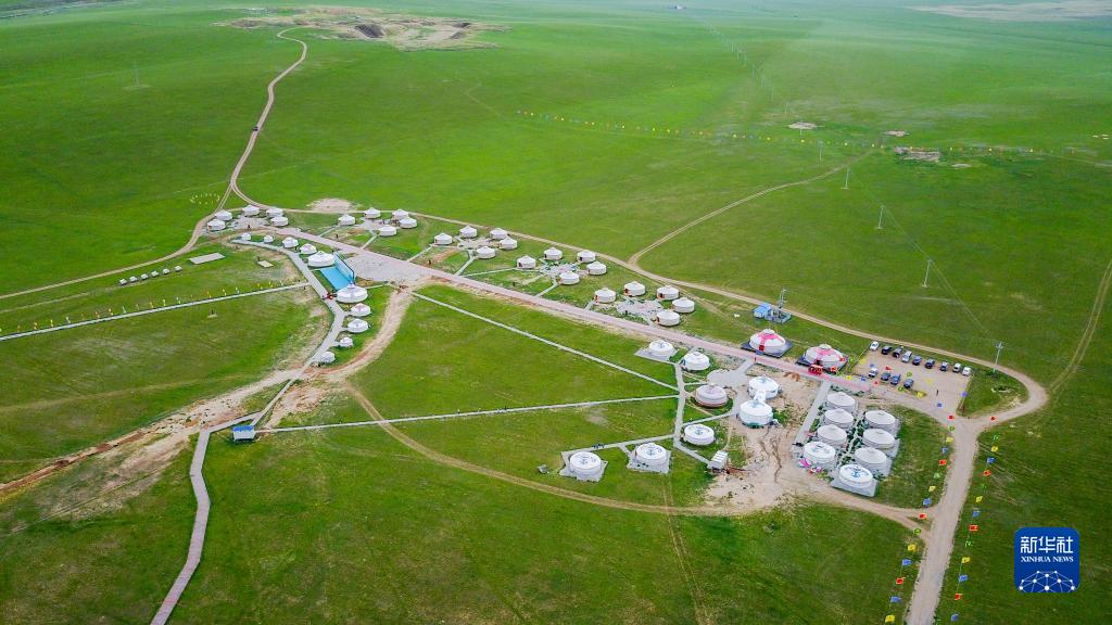 這是內蒙古錫林郭勒盟寶力根蘇木的一處那達慕會場(2017年7月21日攝,無人機照片)。新華社記者 連振 攝