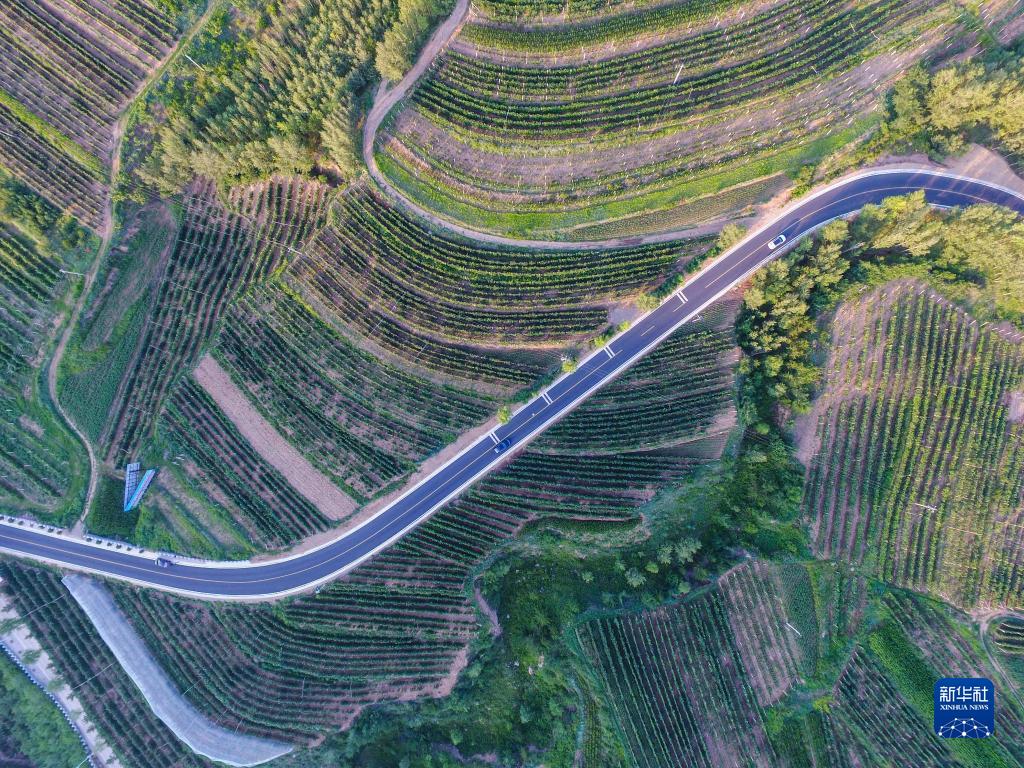 這是2021年8月30日拍攝的內蒙古赤峰市喀喇沁旗馬鞍山村風光(無人機照片)。新華社記者 貝赫 攝