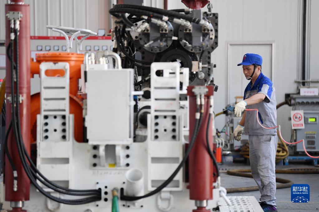 6月17日,在位于秦創(chuàng)原總窗口所在地陜西省西咸新區(qū)的陜西太合智能鉆探有限公司,工人準(zhǔn)備對智能定向鉆機進行性能調(diào)試。 新華社記者 李一博 攝