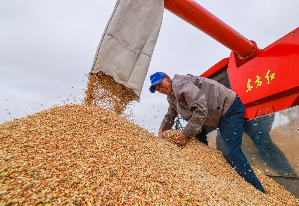 2022年6月19日,河北省遵化市劉備寨鄉(xiāng)的農(nóng)民將收獲的小麥裝車。新華社發(fā)(劉滿倉 攝)