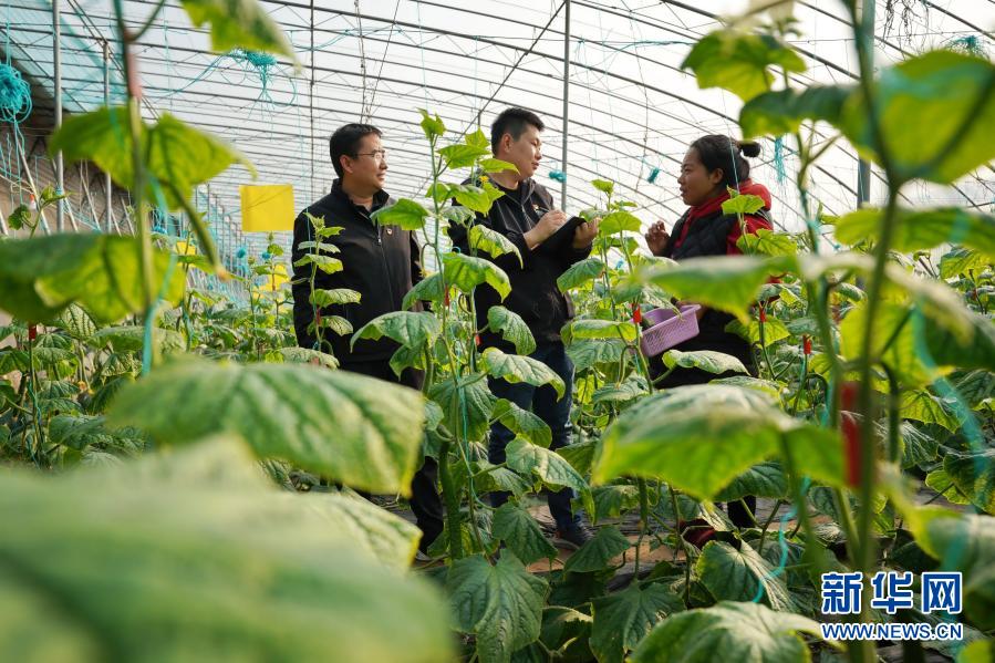 2020年12月10日,河北省巨鹿縣紀(jì)委監(jiān)委工作人員(左一和左二)在巨鹿縣一個(gè)農(nóng)業(yè)園區(qū)的大棚向種植戶了解扶貧資金落實(shí)情況。 新華社記者 牟宇 攝
