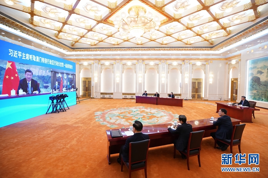 1月27日,國家主席習(xí)近平在北京以視頻連線方式聽取了澳門特別行政區(qū)行政長官賀一誠2020年度的述職報告。新華社記者 鞠鵬 攝