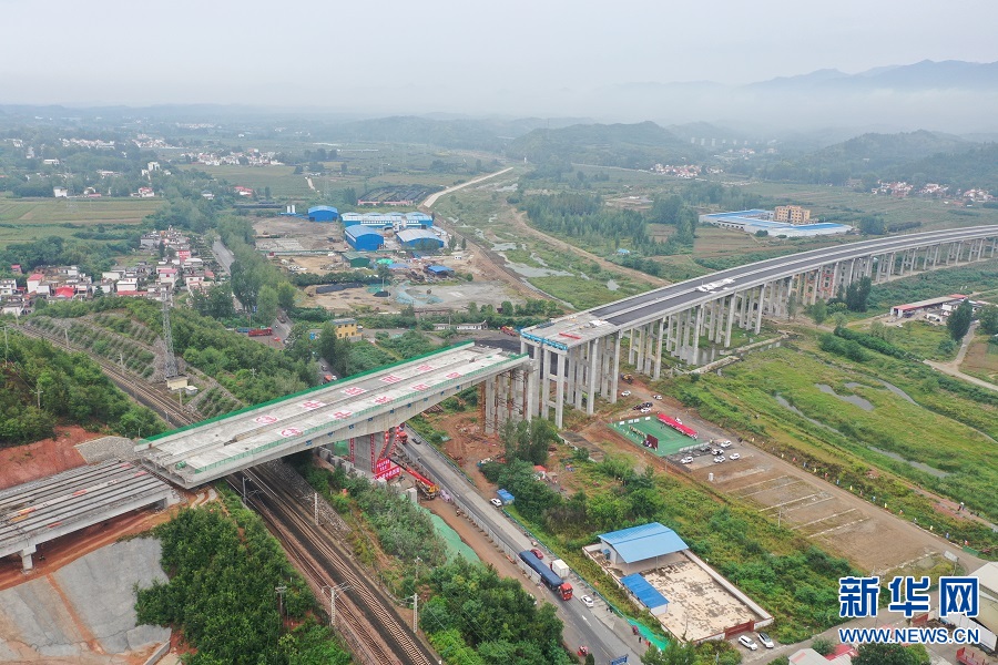 新華網(wǎng)鄭州9月22日電(范作言)9月20上午8:30,在河南南陽澠淅高速(澠池-淅川)跨寧西鐵路(南京-西安)轉(zhuǎn)體橋施工現(xiàn)場,隨著2臺牽引機的轟鳴啟動,重達(dá)21000噸的T構(gòu)梁緩慢順時針旋轉(zhuǎn),在歷時90分鐘旋轉(zhuǎn)67.5°后成功轉(zhuǎn)體,平穩(wěn)跨越了寧西鐵路和G312國道,在空中實現(xiàn)“華麗轉(zhuǎn)身”和精準(zhǔn)對接。