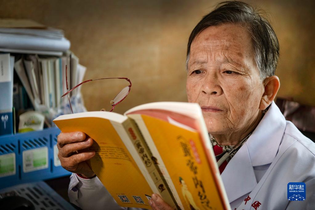 在陜西佳縣中醫(yī)院門診義診的路生梅,沒有病人時(shí)堅(jiān)持看書學(xué)習(xí)(2020年4月8日攝)。新華社記者 陶明 攝