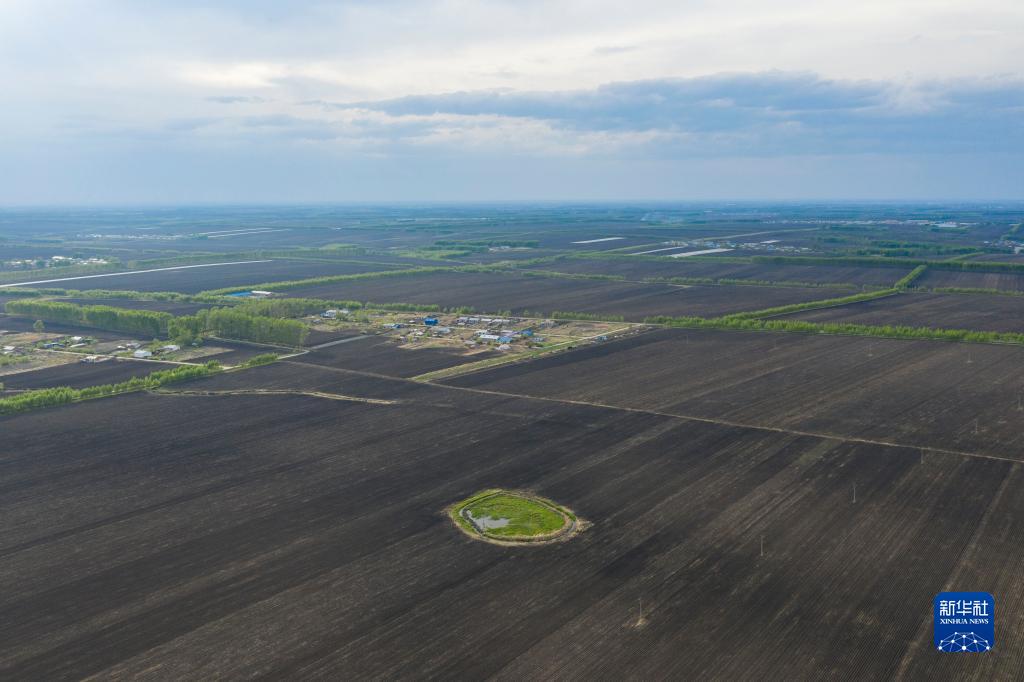 這是黑龍江省海倫市前進(jìn)鎮(zhèn)光榮村已完成播種的黑土耕地(無人機照片,2022年5月23日攝)。新華社記者 謝劍飛 攝