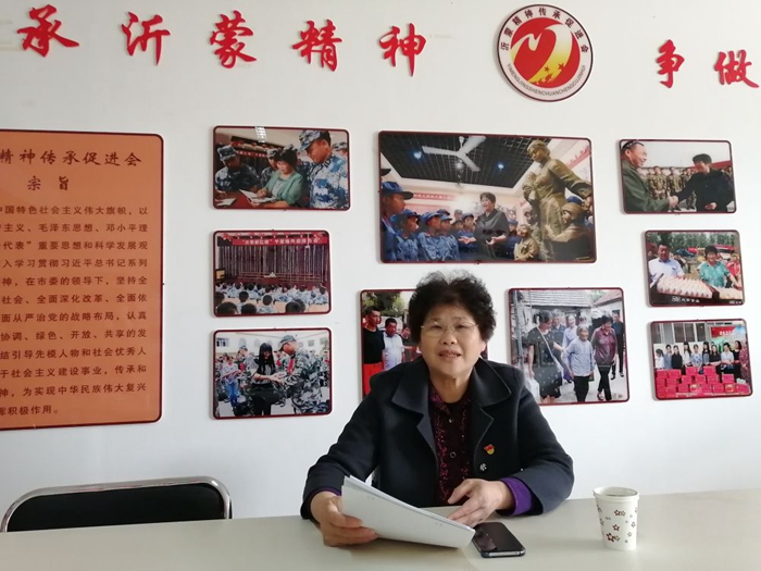 2016年,于愛梅發(fā)起成立沂蒙精神傳承促進會,承擔(dān)起傳承、弘揚沂蒙精神的重任,現(xiàn)有會員300余人。走訪慰問部隊哨所、各地開展宣講報告,年近七十的于愛梅足跡已遍布大半個中國。