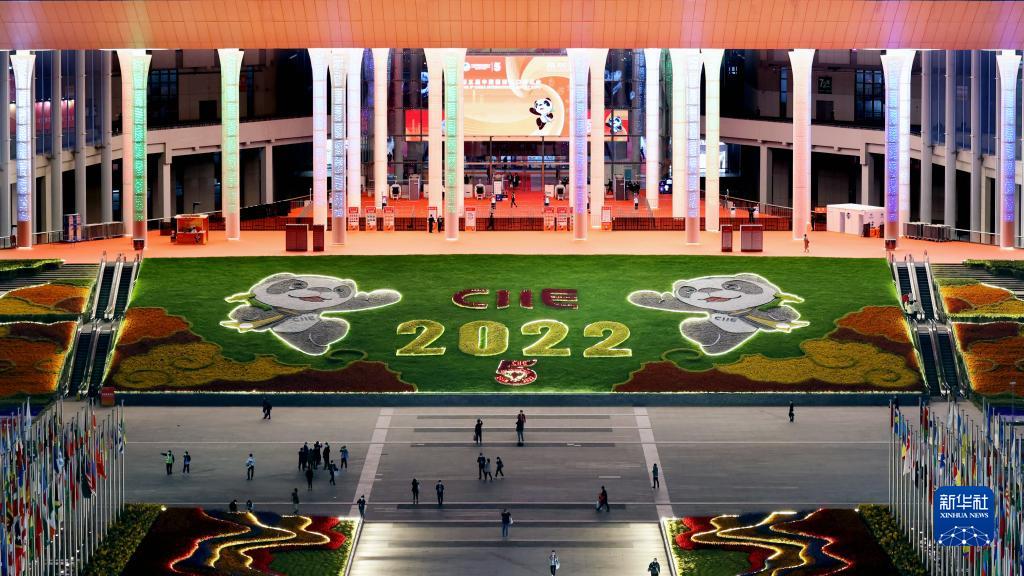 這是2022年11月5日拍攝的第五屆中國(guó)國(guó)際進(jìn)口博覽會(huì)舉辦地國(guó)家會(huì)展中心(上海)夜景。新華社記者 劉穎 攝
