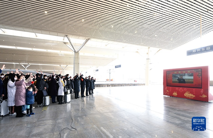 鄭州東站是我國(guó)最大的高鐵站之一,今年春運(yùn)期間預(yù)計(jì)旅客發(fā)送量337萬(wàn)人。習(xí)近平通過(guò)視頻連線看望慰問(wèn)鐵路客運(yùn)干部職工。在東站一站臺(tái),鄭州東站站長(zhǎng)匯報(bào)車站春運(yùn)總體情況。習(xí)近平又詳細(xì)詢問(wèn)車站現(xiàn)在每天的客流量是多少?防疫措施落實(shí)得怎么樣?春運(yùn)治安采取了哪些措施?囑咐他們精心組織調(diào)度,嚴(yán)守安全底線,確保廣大旅客安全出行。月臺(tái)上的旅客看見總書記,爭(zhēng)相趕到鏡頭前,向總書記問(wèn)好。習(xí)近平親切詢問(wèn)他們是回家過(guò)年還是外出旅游,叮囑他們注意旅途安全。習(xí)近平指出,春運(yùn)是關(guān)系人民群眾切身利益、關(guān)系經(jīng)濟(jì)發(fā)展和社會(huì)穩(wěn)定的一件大事。今年春運(yùn)是疫情防控進(jìn)入新階段后的第一個(gè)春運(yùn),客流量大幅回升。交通運(yùn)輸部門要堅(jiān)決貫徹落實(shí)黨中央要求,提升保通保暢能力,確保人民群眾平安健康出行,確保重點(diǎn)物資運(yùn)輸暢通有序。要堅(jiān)持底線思維,加強(qiáng)對(duì)極端惡劣天氣的監(jiān)測(cè)和預(yù)警,深入開展安全隱患排查治理,堅(jiān)決遏制重特大安全事故發(fā)生。要加強(qiáng)對(duì)出行相對(duì)集中的務(wù)工流、學(xué)生流的服務(wù)引導(dǎo),確保他們節(jié)前安全返鄉(xiāng)、節(jié)后順利返崗返校。要嚴(yán)格落實(shí)各項(xiàng)防控規(guī)定,最大限度降低交叉感染幾率,保障旅客身體健康。習(xí)近平強(qiáng)調(diào),長(zhǎng)期以來(lái),交通運(yùn)輸系統(tǒng)的干部職工埋頭苦干,擔(dān)當(dāng)奉獻(xiàn),功不可沒(méi)。春節(jié)期間,許多同志要堅(jiān)守崗位。習(xí)近平代表黨中央,向交通運(yùn)輸系統(tǒng)的廣大干部職工致以新春的祝福,并祝廣大旅客旅途順利。