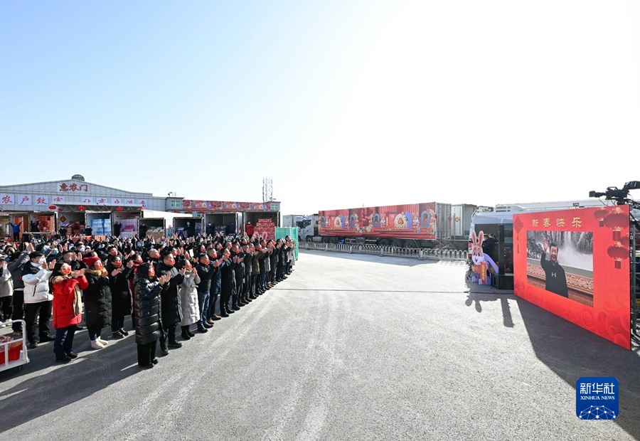 新發(fā)地農(nóng)產(chǎn)品批發(fā)市場(chǎng)是北京市重要的“菜籃子”、“果盤子”。習(xí)近平通過(guò)視頻親切看望慰問(wèn)批發(fā)市場(chǎng)留守的商戶和采購(gòu)年貨的群眾。在蔬菜一區(qū)露天交易區(qū),商戶和現(xiàn)場(chǎng)的群眾熱烈鼓掌,向總書記問(wèn)好。聽完市場(chǎng)負(fù)責(zé)人介紹保供和物流情況后,習(xí)近平仔細(xì)詢問(wèn)這幾天市場(chǎng)運(yùn)行情況怎么樣、今年商戶的買賣怎么樣、今年批發(fā)價(jià)格怎么樣。得知菜價(jià)保持平穩(wěn)、種類充足齊全,習(xí)近平十分欣慰。他指出,民以食為天。“菜籃子”、“米袋子”、“果盤子”,事關(guān)千家萬(wàn)戶,是最基本的民生。過(guò)年過(guò)節(jié),安全不能忘。批發(fā)市場(chǎng)既要在拓展貨源、豐富品種、保證質(zhì)量上下功夫,也要在加強(qiáng)食品檢測(cè)和市場(chǎng)管理上下功夫,讓首都市民吃得放心、吃得舒心。農(nóng)貿(mào)市場(chǎng)人流物流密集,是疫情防控的重點(diǎn)場(chǎng)所,要適度調(diào)控人流物流,加強(qiáng)疫情監(jiān)測(cè)檢測(cè),搞好市場(chǎng)環(huán)境衛(wèi)生,盡最大努力降低疫情風(fēng)險(xiǎn)。習(xí)近平強(qiáng)調(diào),各級(jí)黨委和政府要落實(shí)好“米袋子”省長(zhǎng)負(fù)責(zé)制、“菜籃子”市長(zhǎng)負(fù)責(zé)制,加強(qiáng)糧油肉蛋奶果蔬菌等重要民生商品的產(chǎn)銷保供,暢通物流配送,豐富節(jié)日市場(chǎng)供應(yīng),確保數(shù)量充足、品種豐富、質(zhì)量放心、價(jià)格穩(wěn)定,讓人民群眾開開心心、安安心心過(guò)大年。