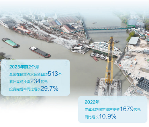 爭(zhēng)分奪秒,一張張“施工圖”正化作“實(shí)景圖”。據(jù)統(tǒng)計(jì),今年前2個(gè)月,全國在建重點(diǎn)水運(yùn)項(xiàng)目約513個(gè),累計(jì)完成投資234億元,與去年同期相比投資完成率增長(zhǎng)29.7%。一系列水運(yùn)工程的順利推進(jìn),為推動(dòng)擴(kuò)內(nèi)需、穩(wěn)增長(zhǎng)提供了有力支撐。