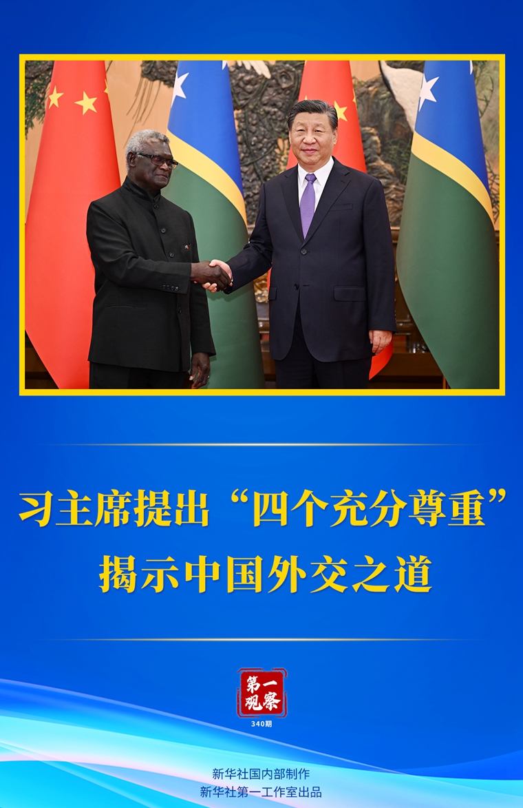 7月10日下午,國(guó)家主席習(xí)近平在人民大會(huì)堂會(huì)見來華進(jìn)行正式訪問的所羅門群島總理索加瓦雷。會(huì)見中,習(xí)近平主席指出,中國(guó)的太平洋島國(guó)政策秉持“四個(gè)充分尊重”——