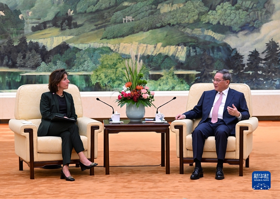 8月29日下午,國務(wù)院總理李強(qiáng)在北京人民大會堂會見美國商務(wù)部長雷蒙多。新華社記者 饒愛民 攝