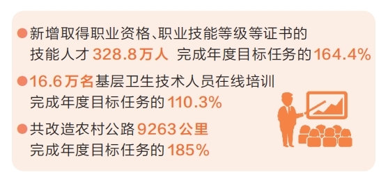 開(kāi)展職業(yè)技能培訓(xùn)和評(píng)價(jià)取證。2023年,全省累計(jì)開(kāi)展職業(yè)技能培訓(xùn)428.7萬(wàn)人次,新增取得職業(yè)資格、職業(yè)技能等級(jí)等證書的技能人才328.8萬(wàn)人,高技能人才124.8萬(wàn)人,分別完成年度目標(biāo)任務(wù)的142.9%、164.4%、155.9%。